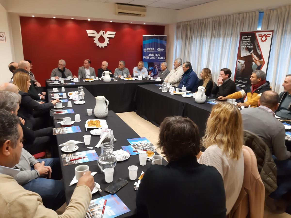 10/06/22 En la Cámara de Comercio, realizamos un nuevo desayuno de trabajo en donde industriales y comerciantes del Distrito expusieron la situación actual de sus rubros, estando presentes por parte de la Institución el Presidente, Sergio Sforza, Vicepresidente 2°, Rolando Carrea, Secretario General, Raúl Lima, Tesorero, Jorge No, y Vocal Suplente 6°, Miguel Castro. Nos acompañaron dirigentes de las Cámaras de Malvinas y Tigre, y contamos con el auspicio del Banco Supervielle.