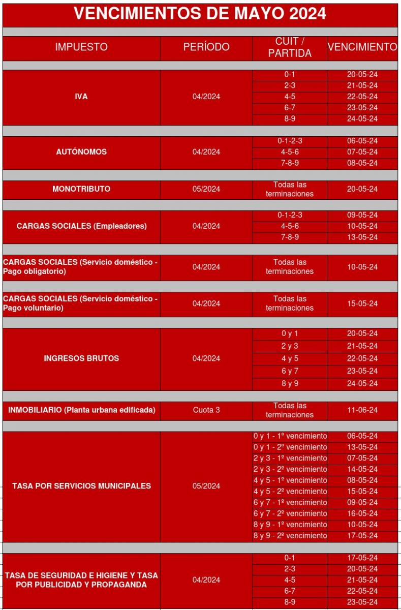 Vencimientos Mayo 2024