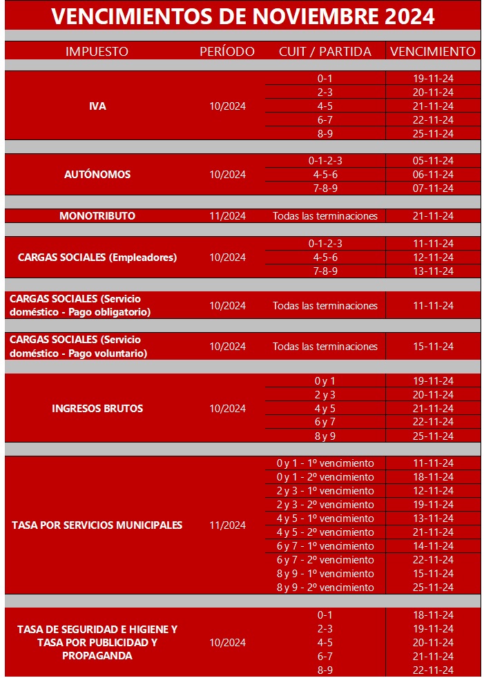 Vencimientos Noviembre 2024